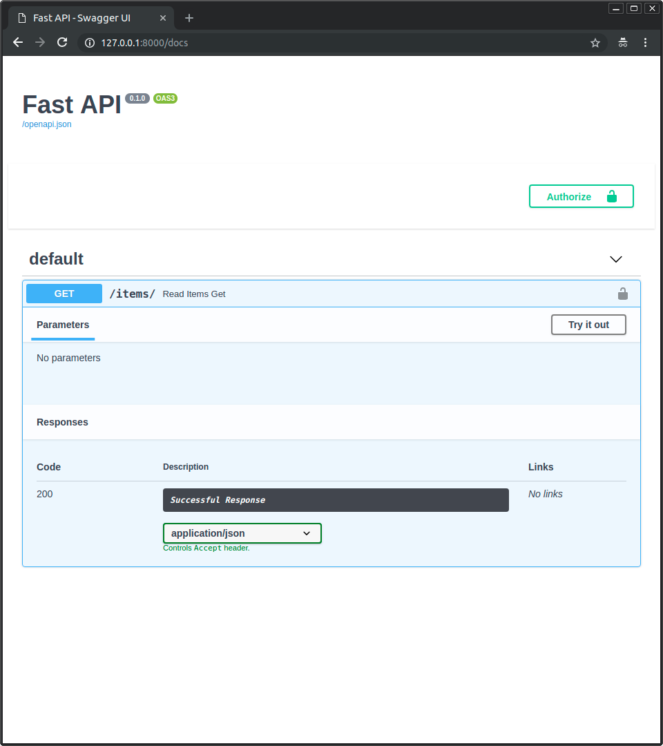 Go to the interactive docs at: http://127.0.0.1:8000/docs.